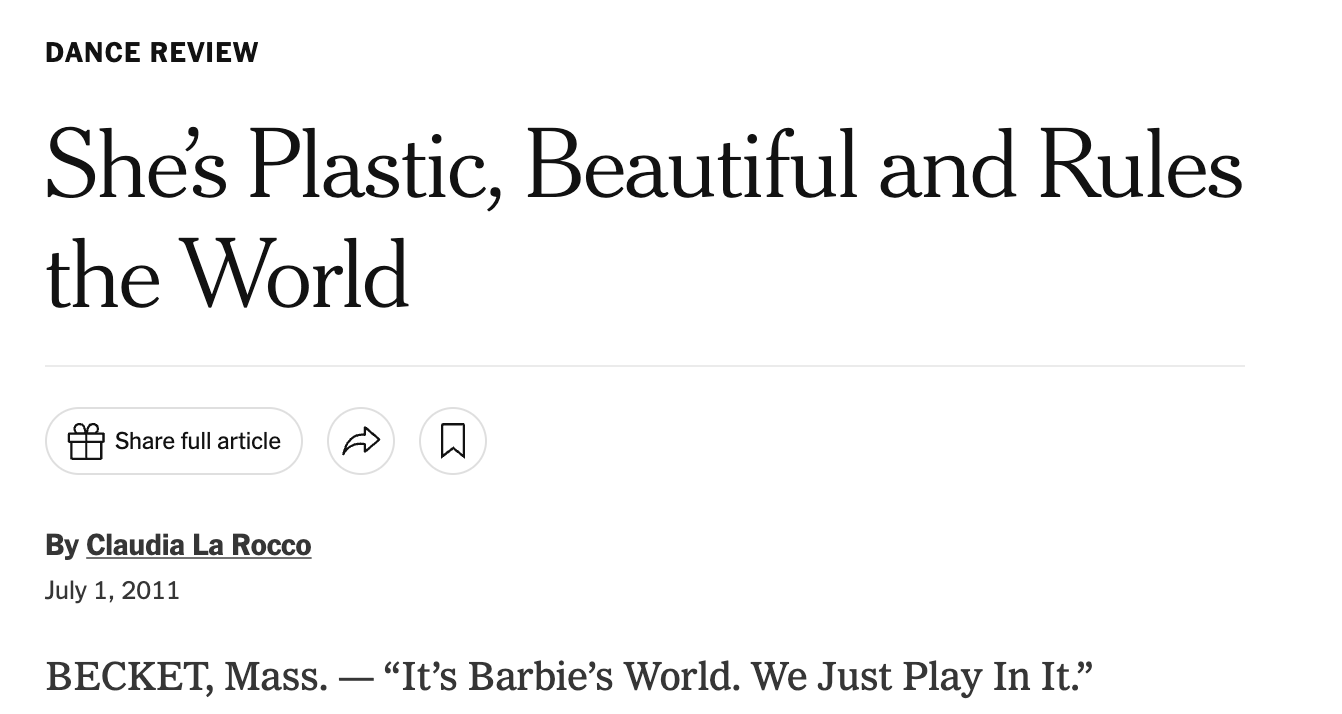 2011 “Barbie and Ken are all dolled up at Jacob’s Pillow festival” by Janine Parker, The Boston Globe