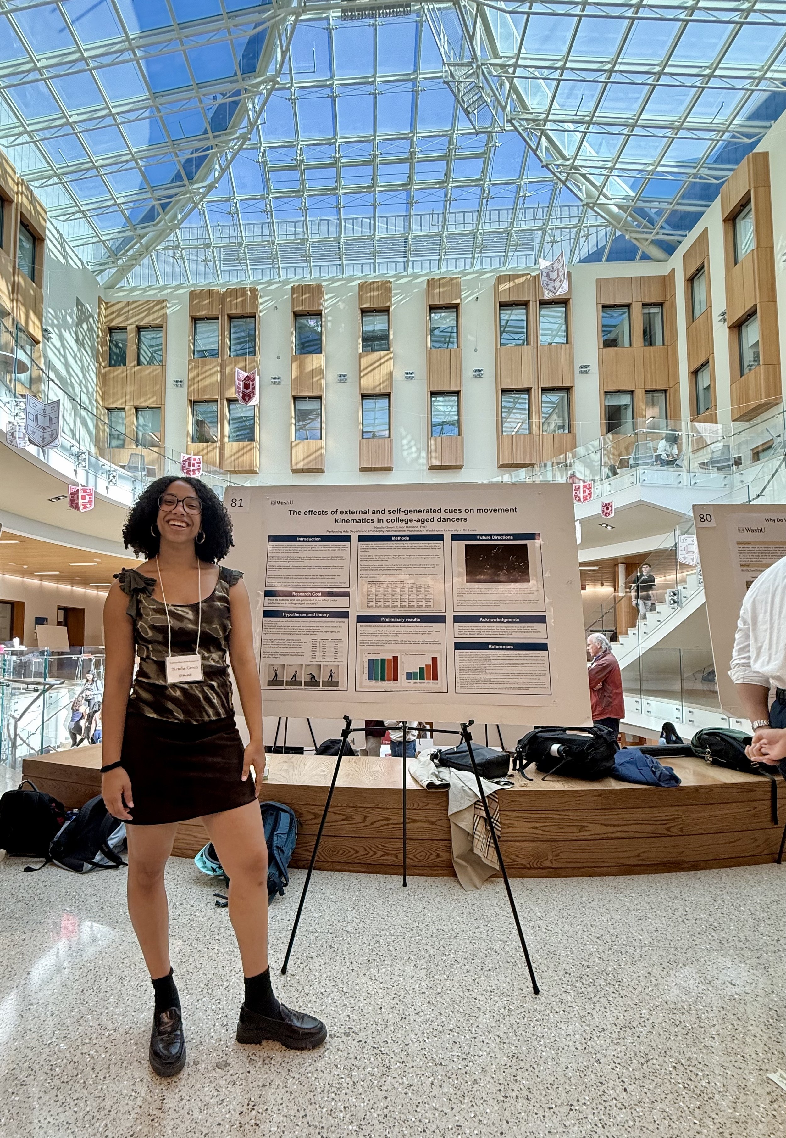Natalie Green presents her research on matching movement to sound at the WashU Undergraduate Research Symposium.